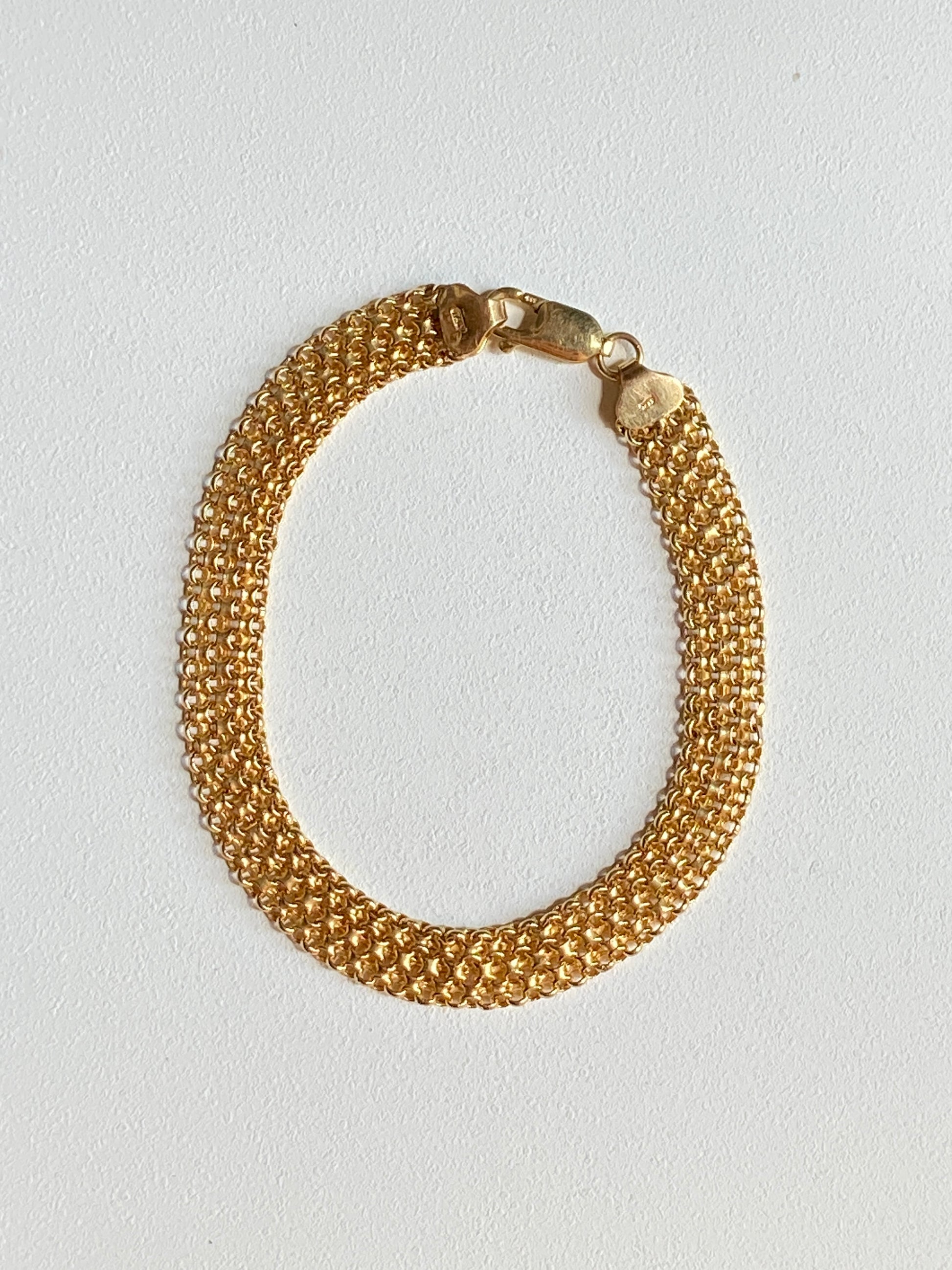VINTAGE 14K GOLD BISMARK BRACELET, 7 7/8" x 8 MM