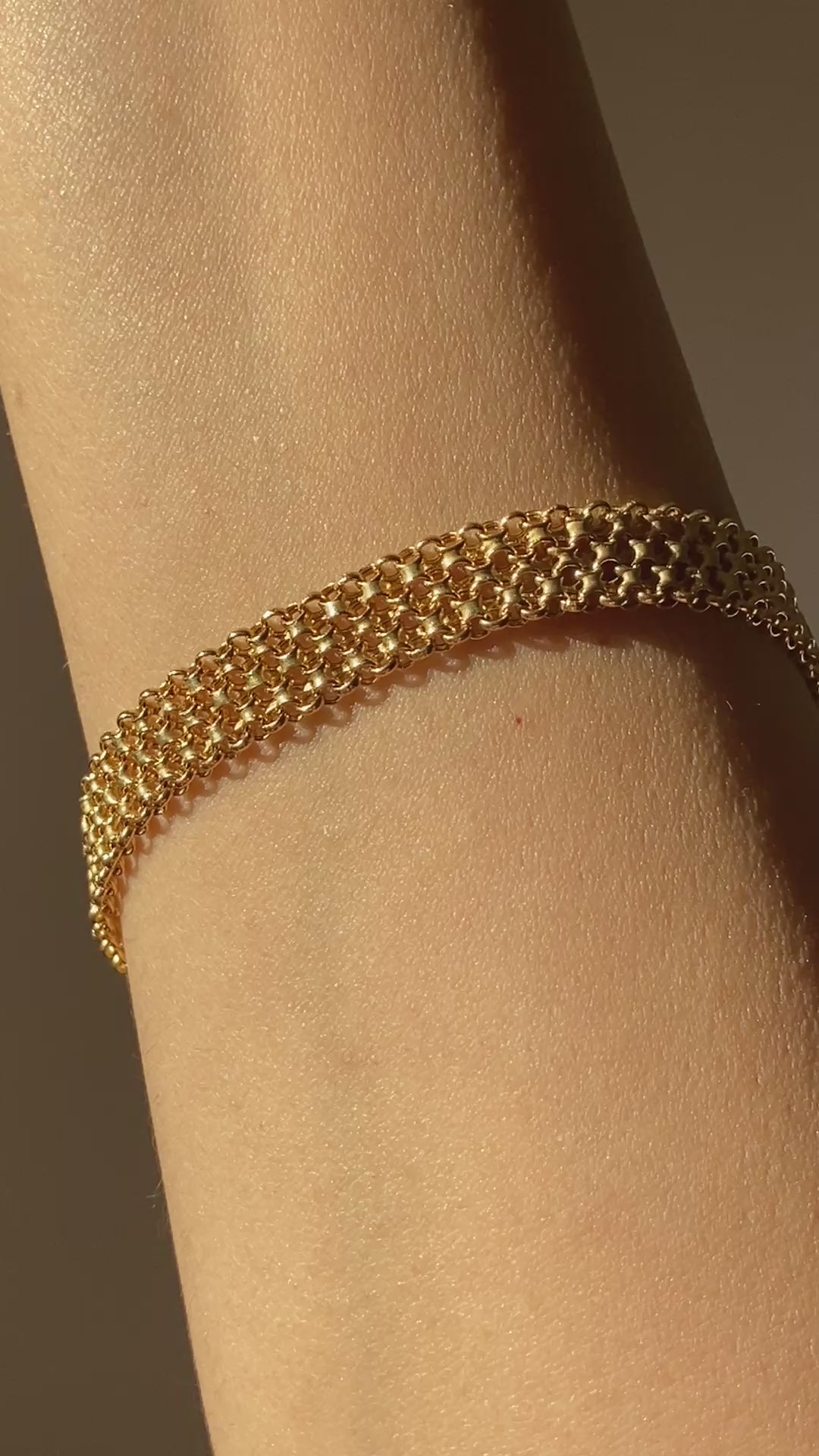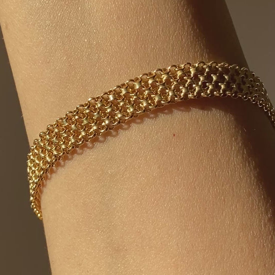 Vintage 14K solid yellow Italian gold textured Bismark chain bracelet with a lobster clasp.