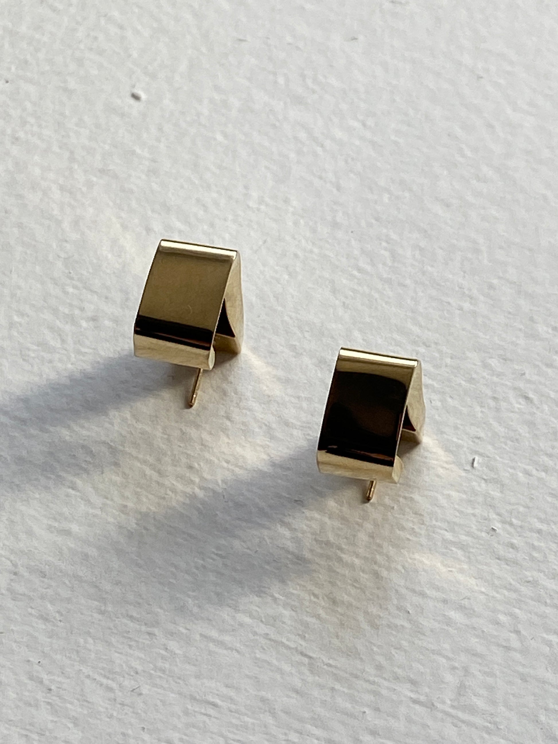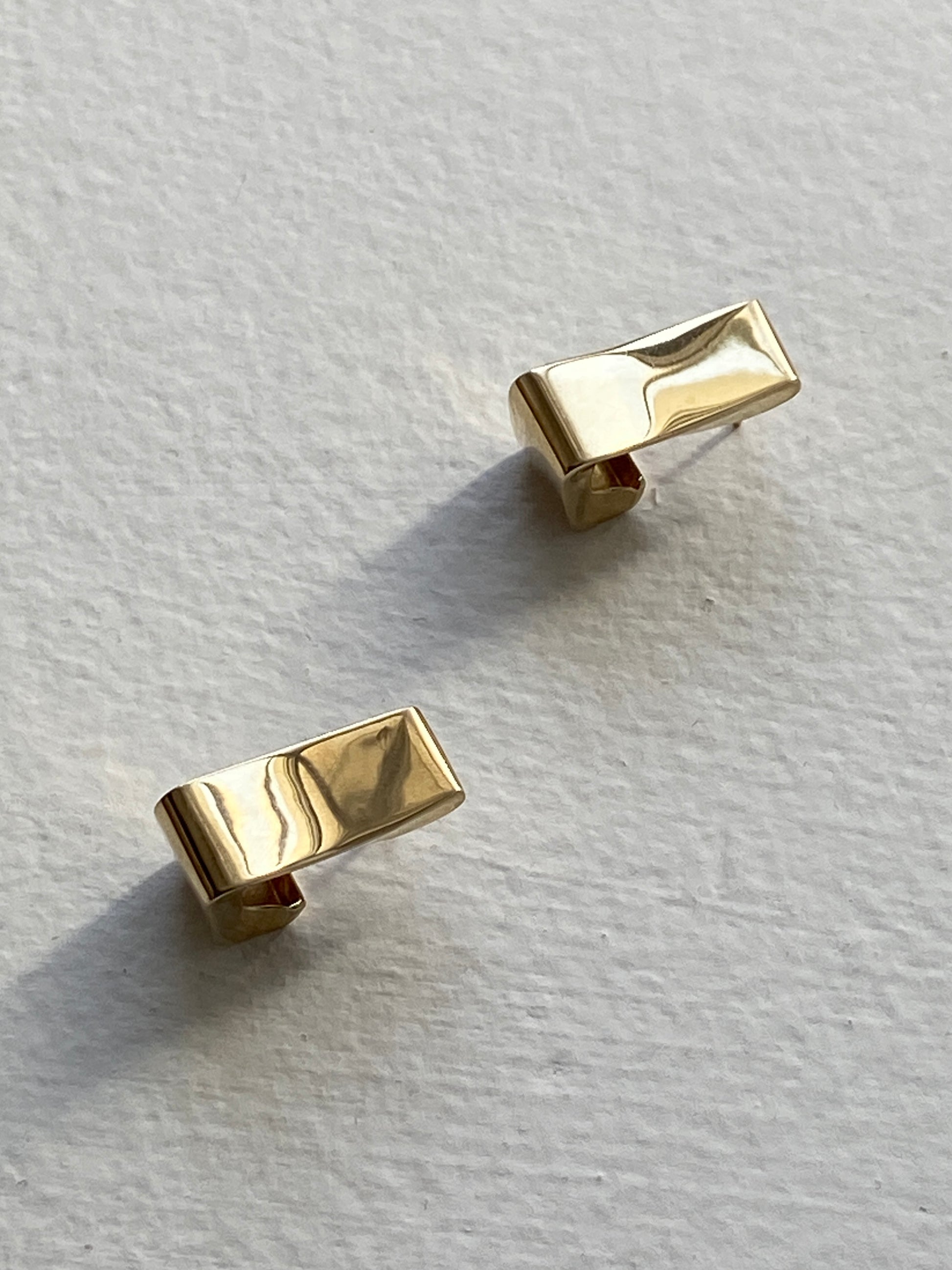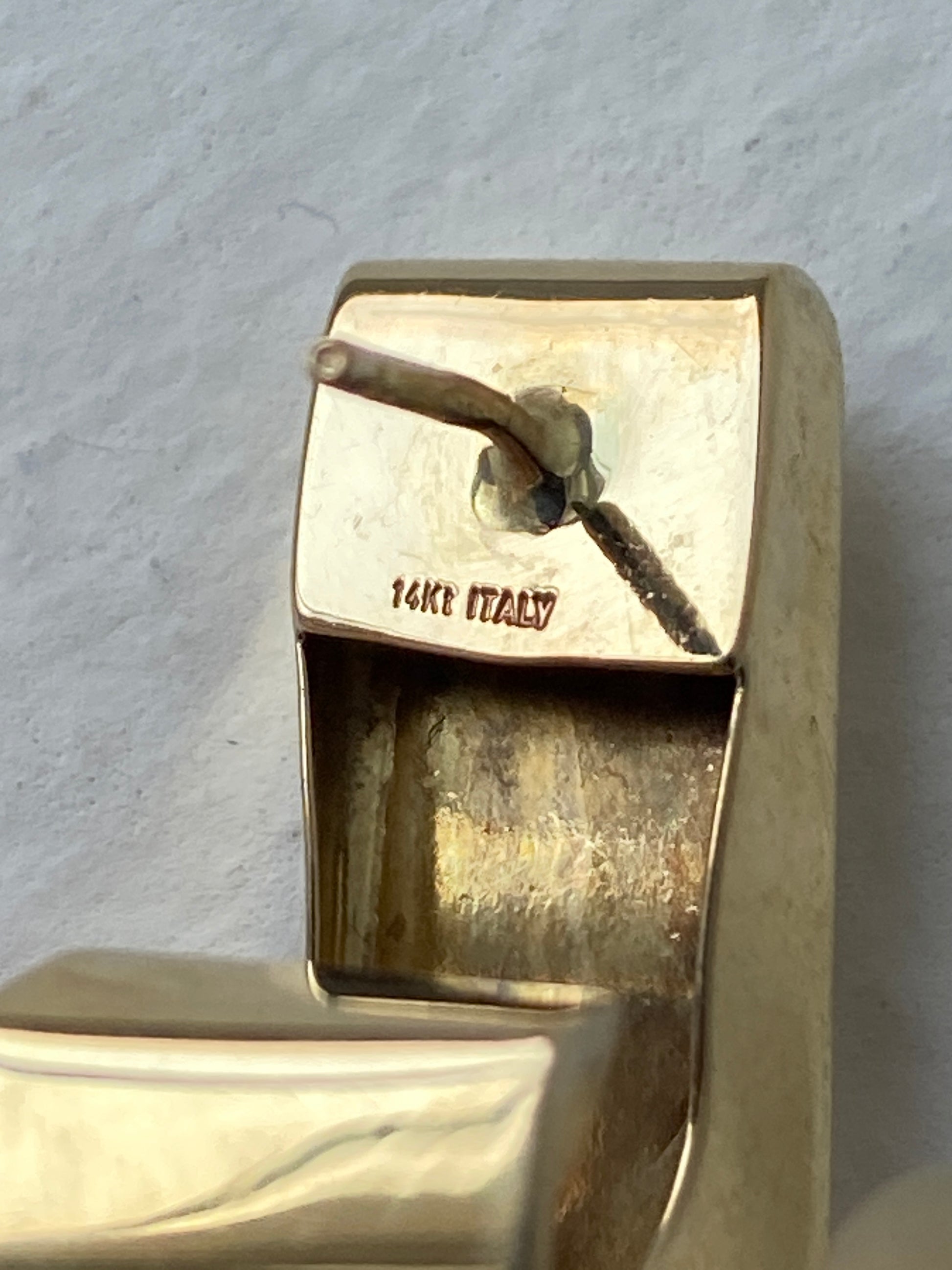 Vintage 14K solid yellow gold chunky, geometric j-hoop earrings.