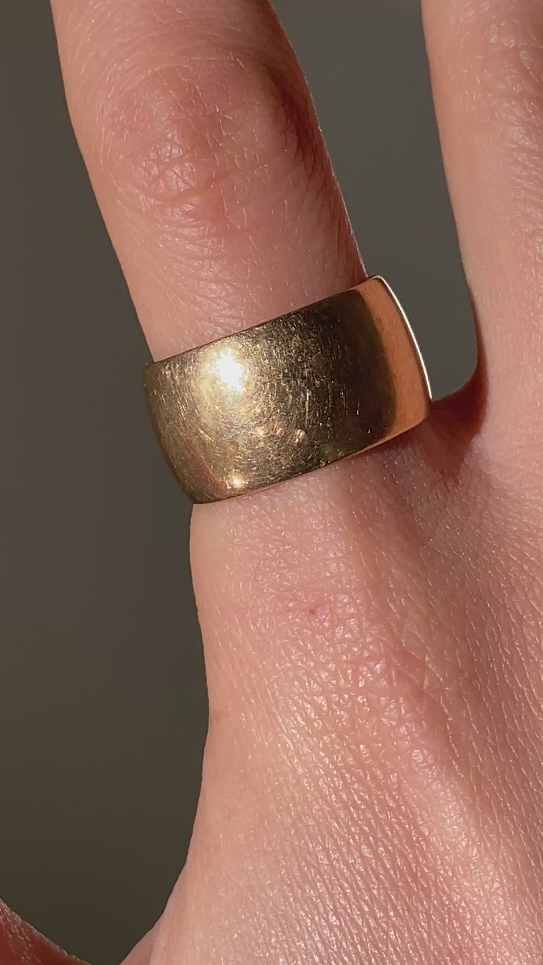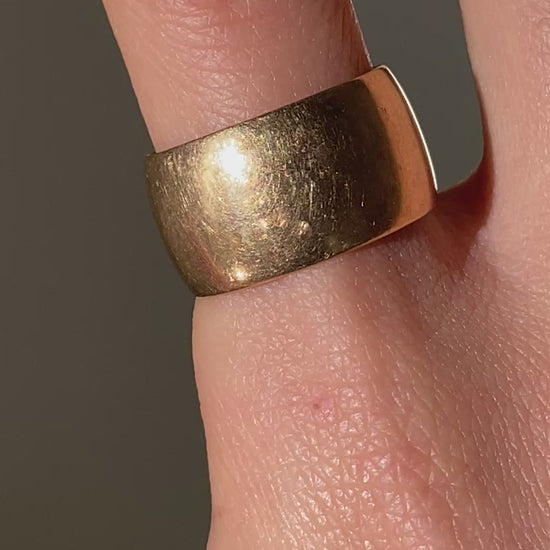 Vintage 14k solid yellow gold wide cigar band with gorgeous patina.