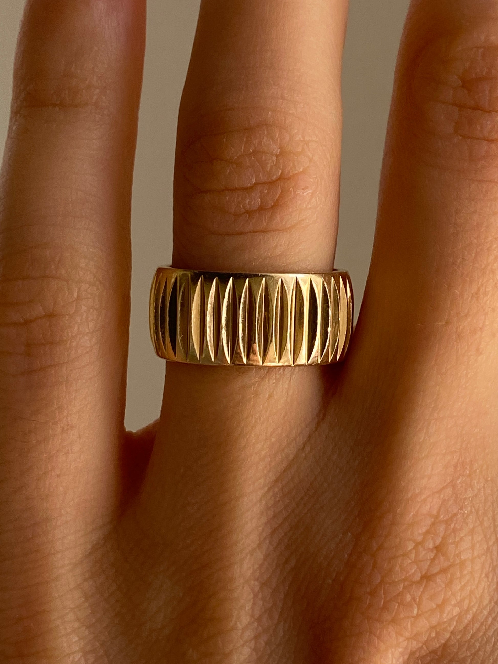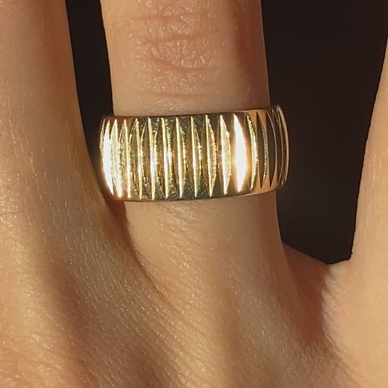 Vintage 14K solid yellow gold cigar band with diamond-cut engravings.