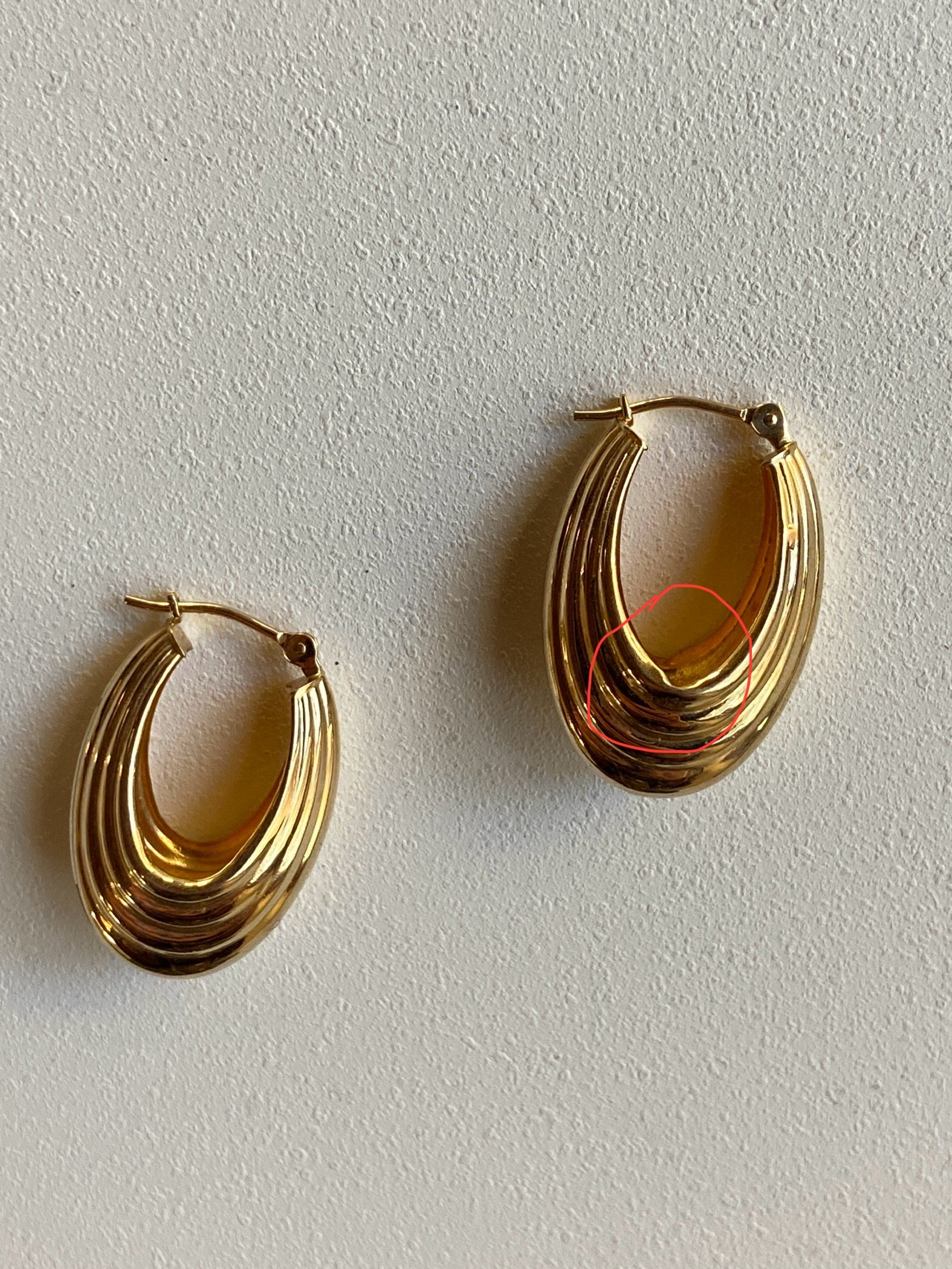 There's a small dent on either side of one hoop- see circled in red in photos.