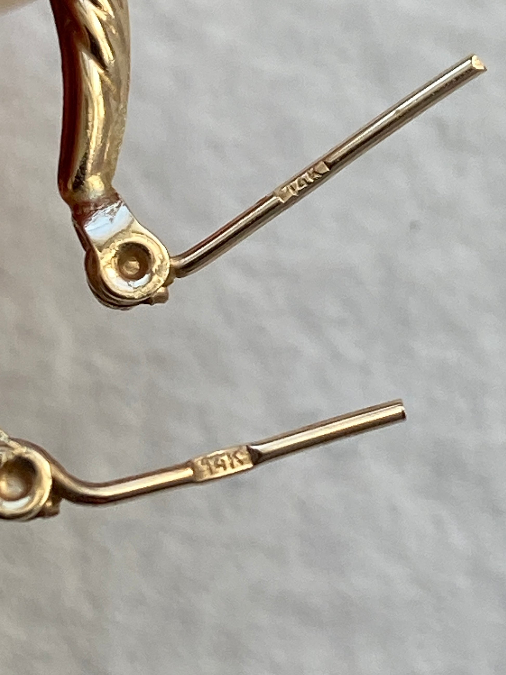 Vintage 14K solid yellow gold oval ribbed hoops.