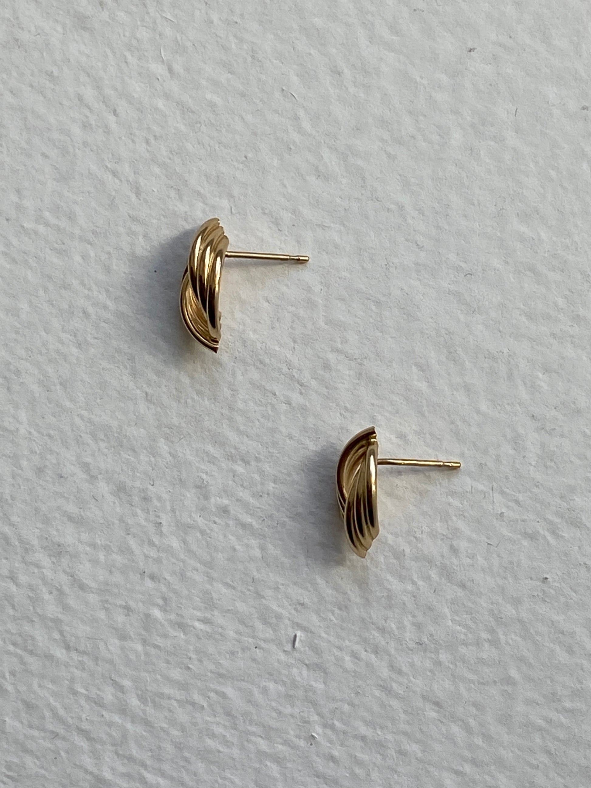 VINTAGE 14K GOLD RIBBED STUDS, 14 MM x 8 MM
